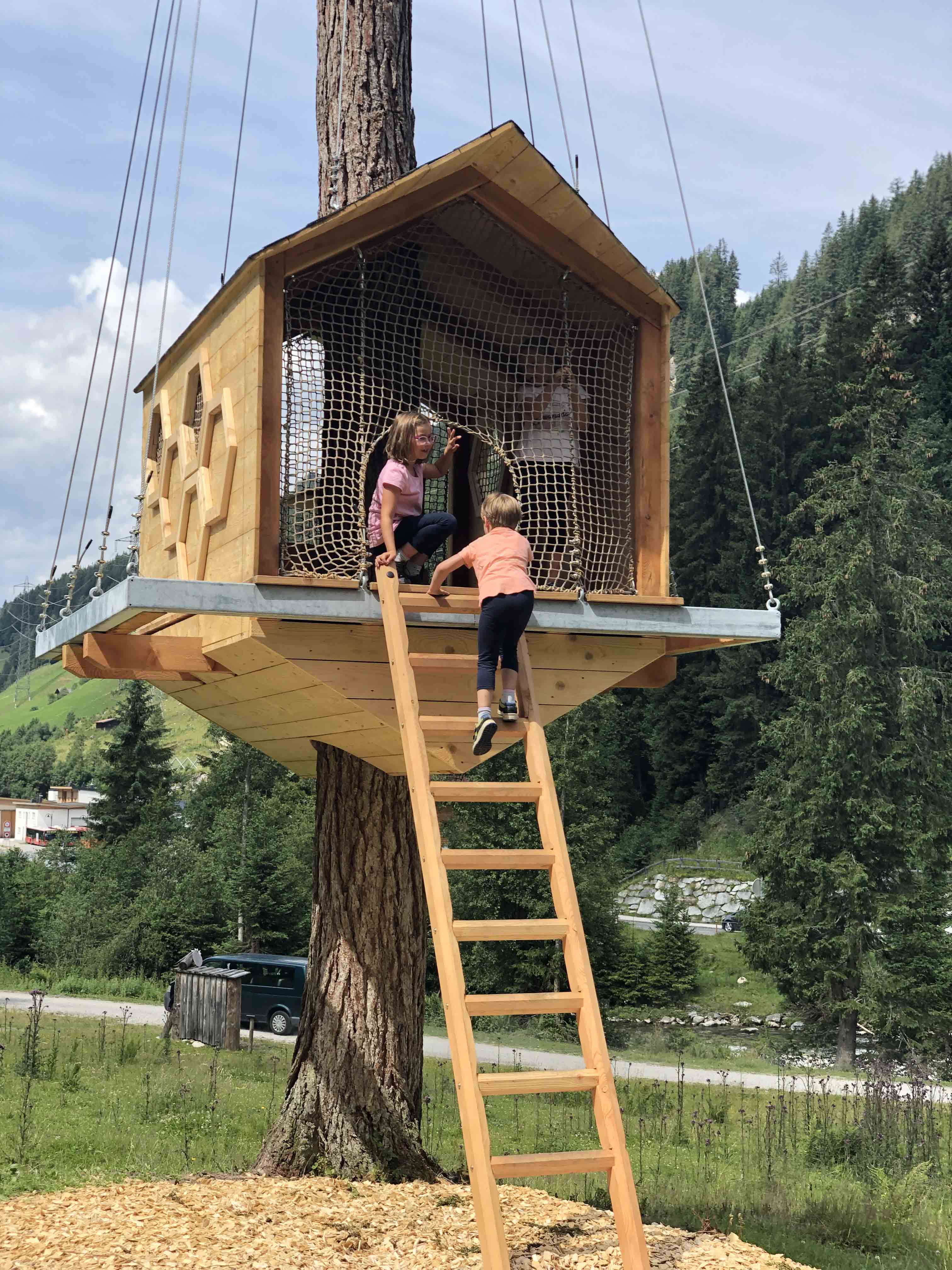 Unsere Bautechnik auf und mit den Bäumen ermöglicht es, naturnahe Spielsituationen zu schaffen, die Beweglichkeit, Körperbewusstsein und Selbstvertrauen zu fördern und zu stärken. Bäume müssen also nicht gefällt werden, um Platz zum Spielen zu schaffen – ganz im Gegenteil! Unsere baumschonende Bauweise vermeidet aufwendiges Fällen und Säubern der Spielfläche sowie unnötiges Betonieren von Fundamenten für Klettergerüste.