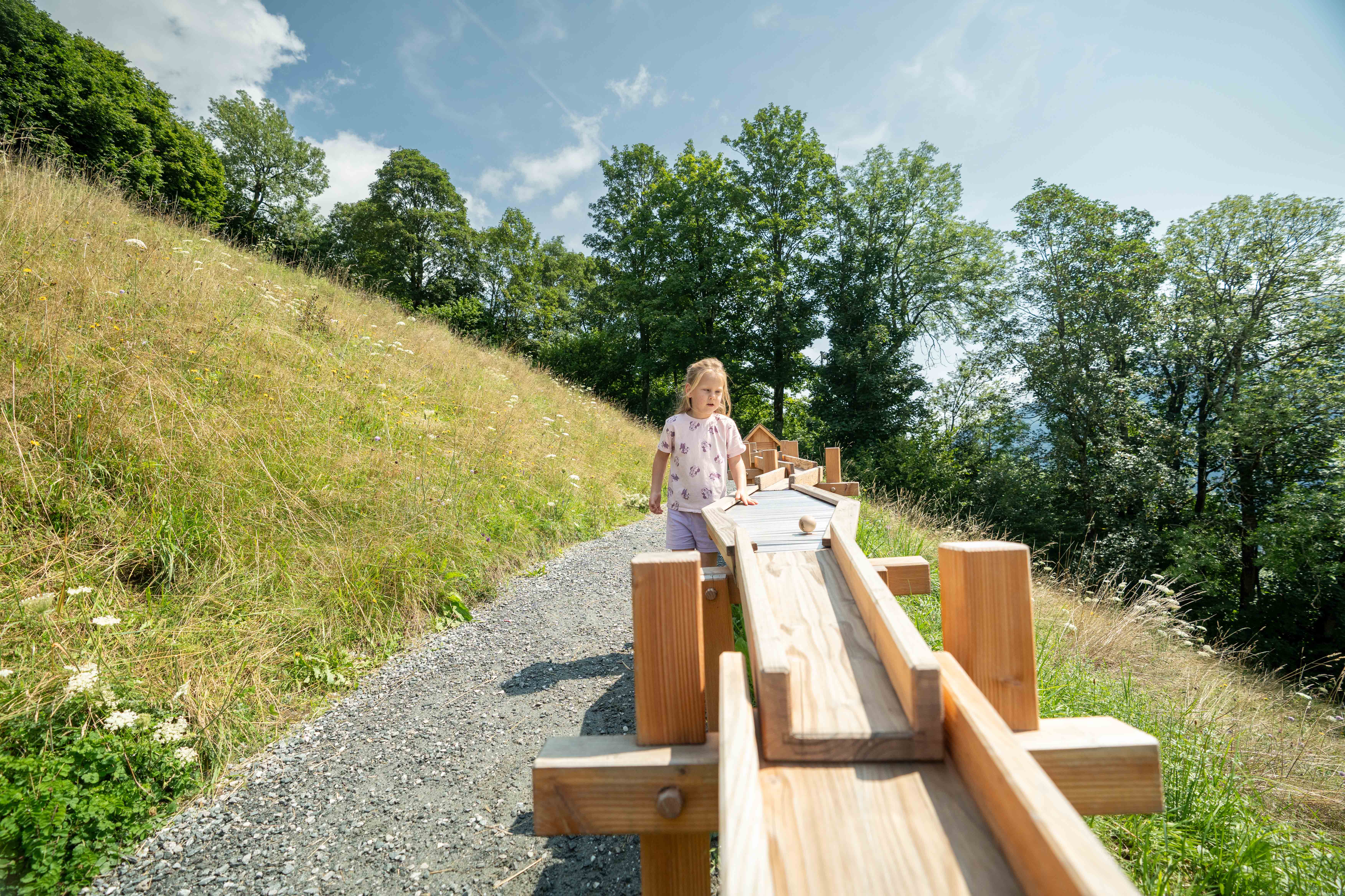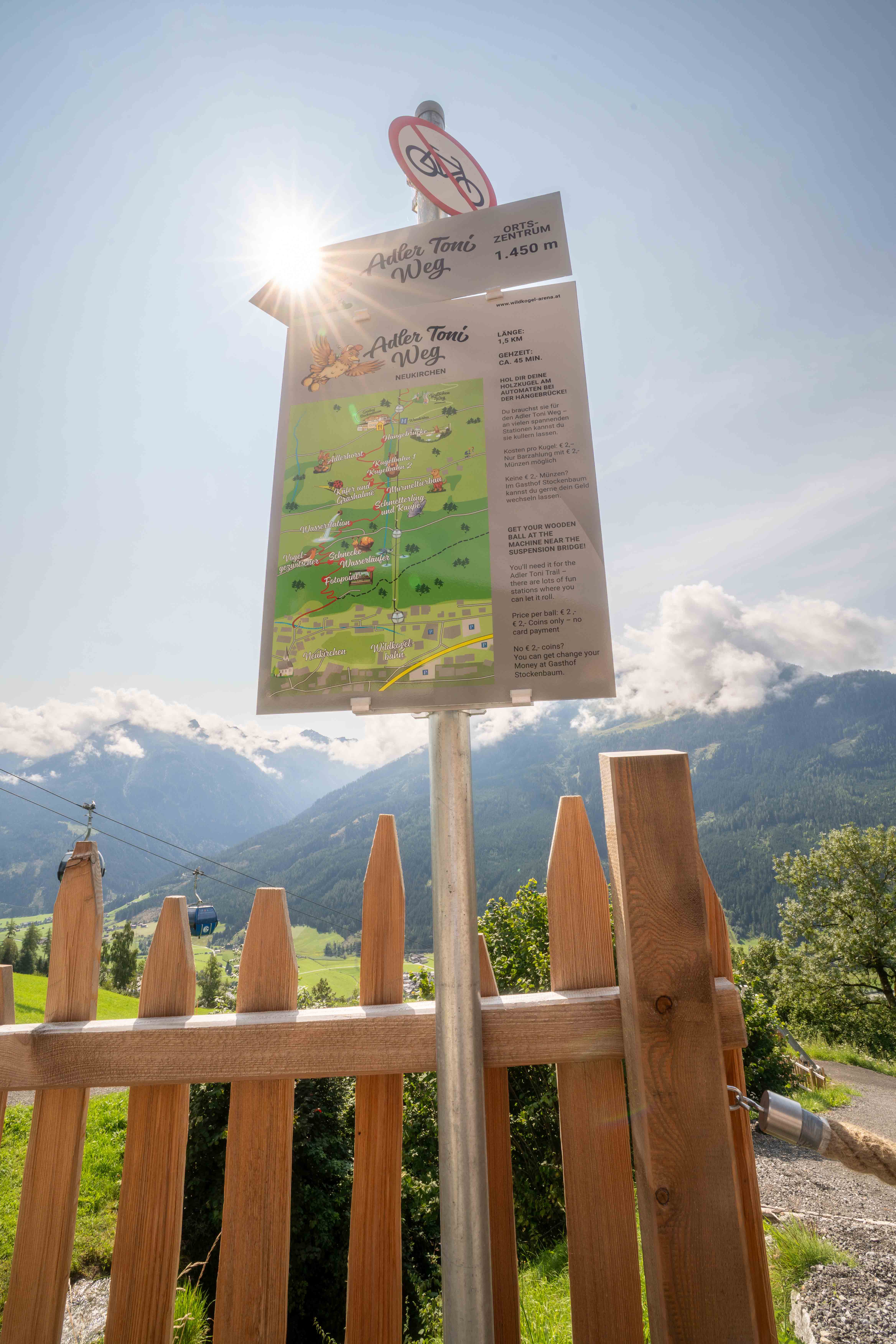 Der rund 1,5 Kilometer lange Themenweg beginnt beim Gasthof Stockenbaum und führt bis ins Ortszentrum von Neukirchen am Grossvenediger. Elf abwechslungsreiche Erlebnisstationen laden Kinder zum Spielen, Entdecken und Staunen ein.