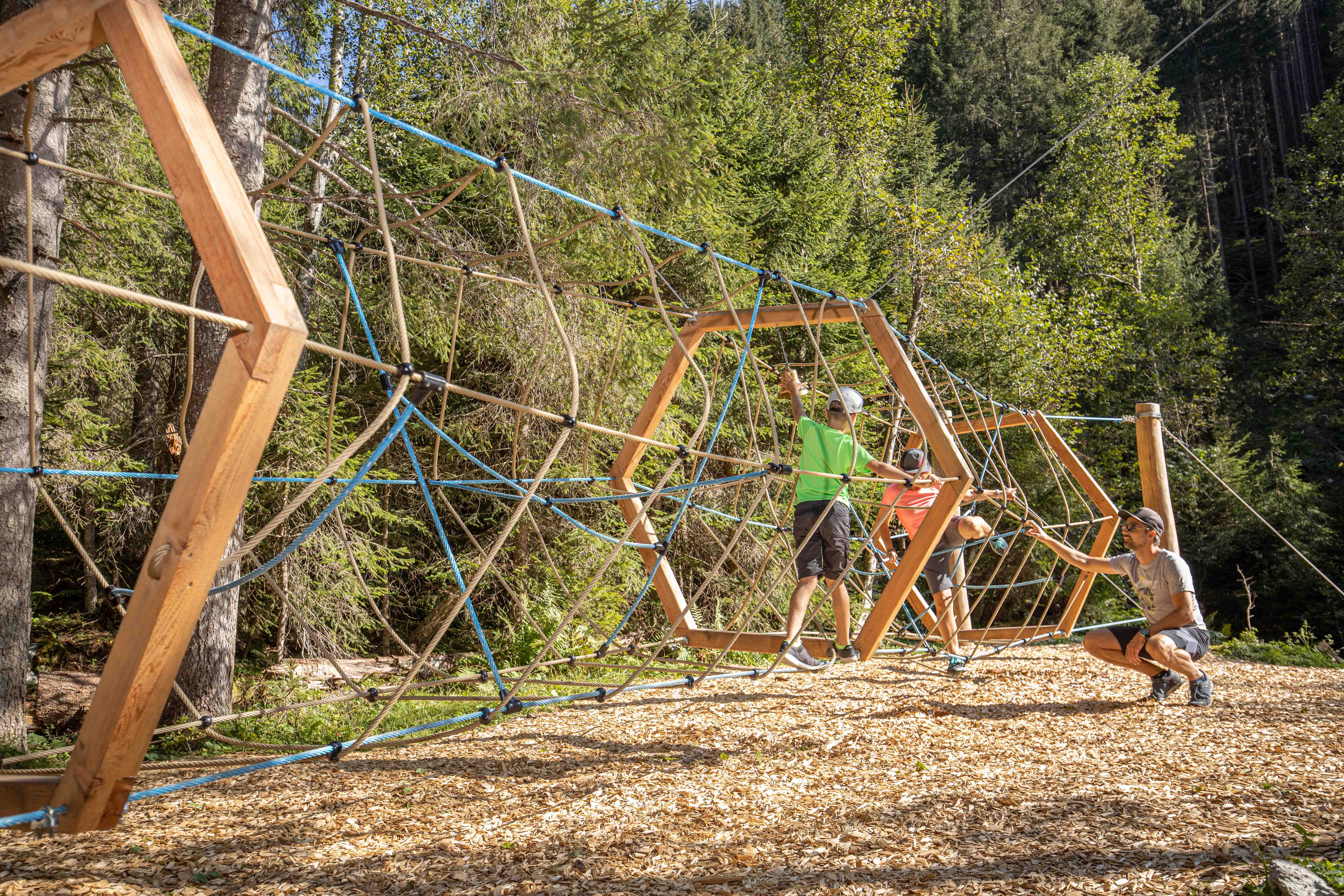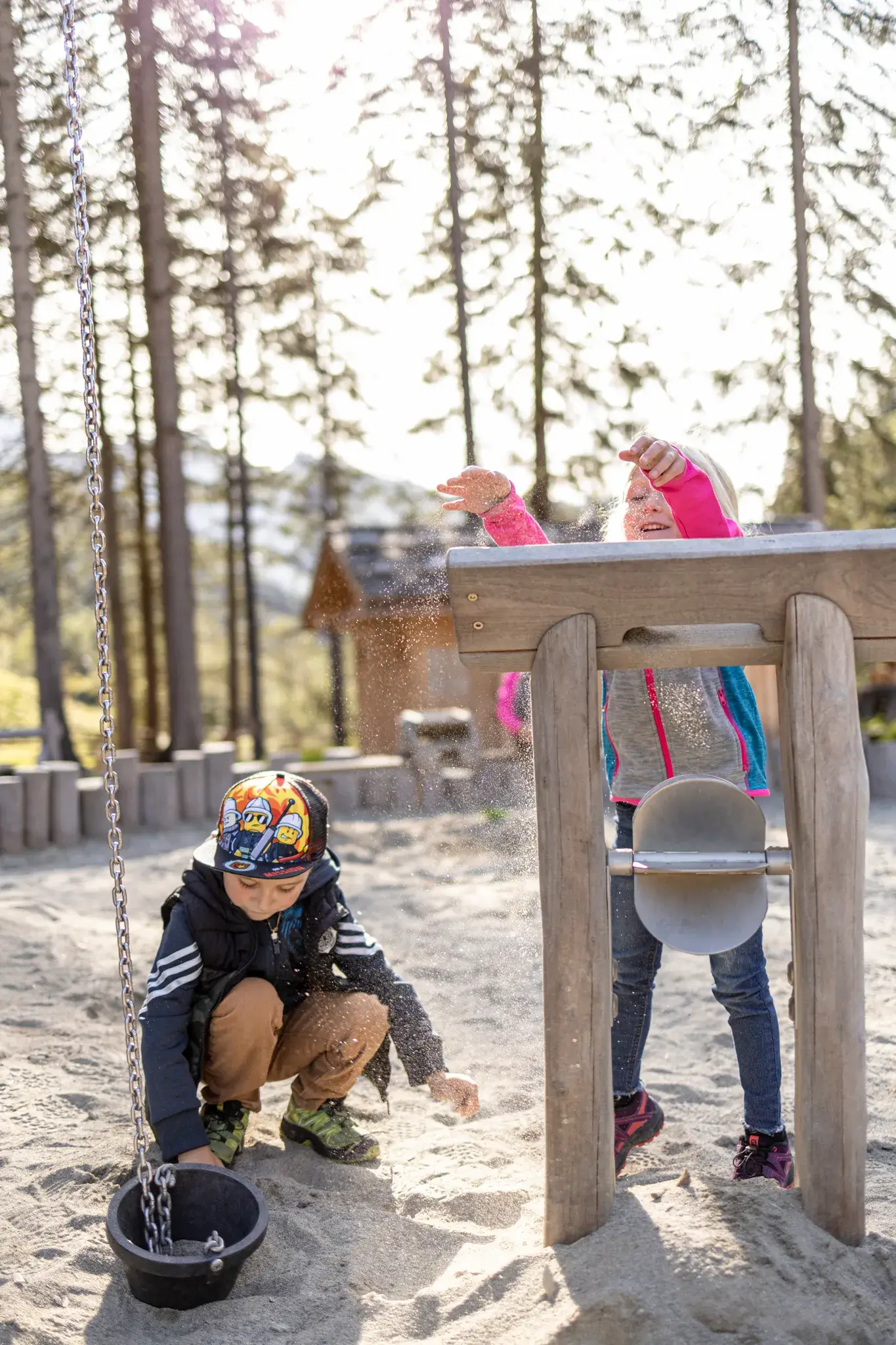 Direkt am Wanderweg entlang des Gerlosbach und gleich unterhalb des Hochseilgarten Gelos ist für kleine und größere Kinder ein wunderschöner Waldspielplatz entstanden, mit allem, was das Herz begehrt: