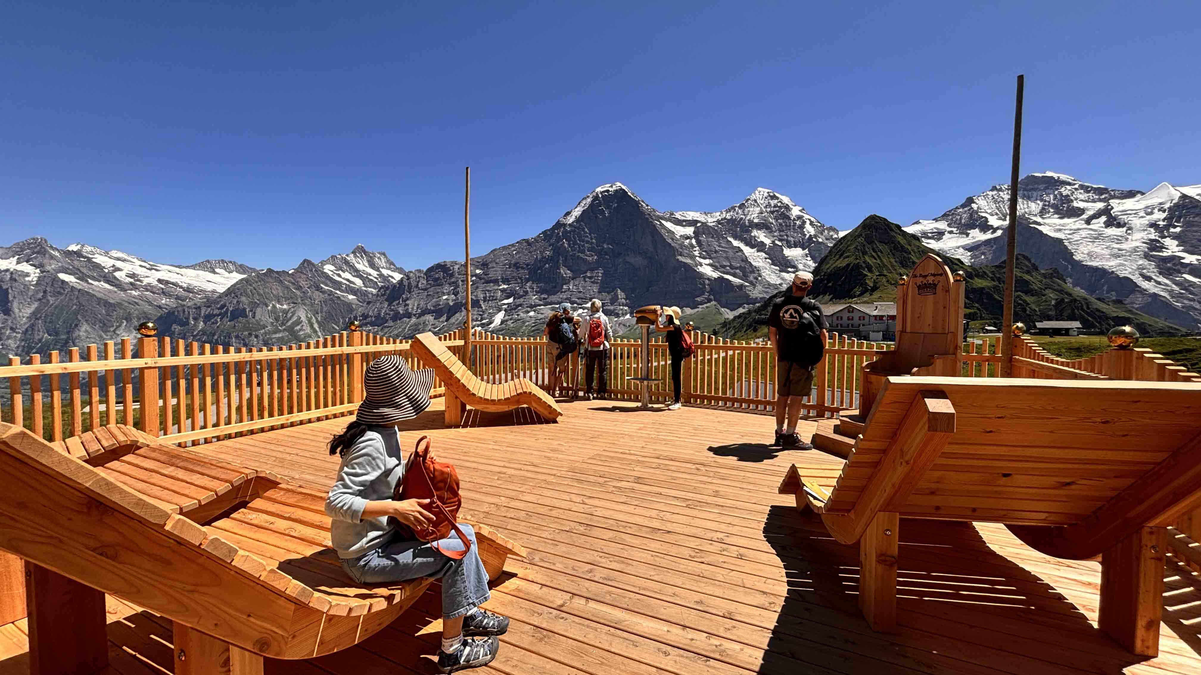 Oben angekommen wartet die Krönung: ein atemberaubender Blick auf Eiger, Mönch und Jungfrau. Ein kurzer, eindrucksvoller Panoramaweg, der Natur, Wissen und Weitblick auf besondere Weise verbindet.