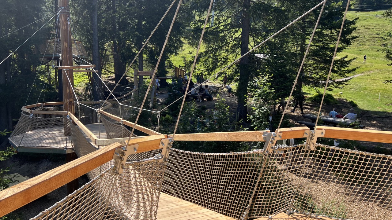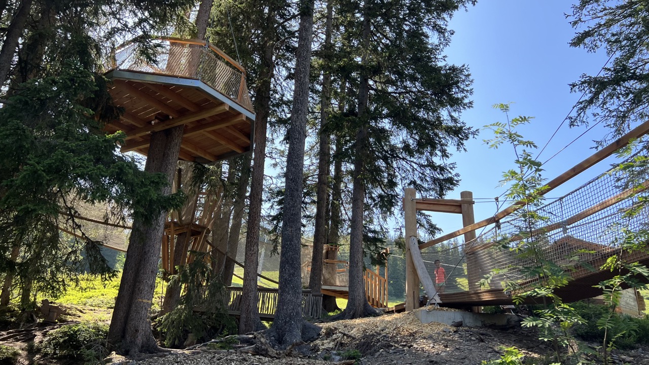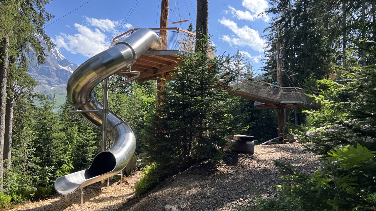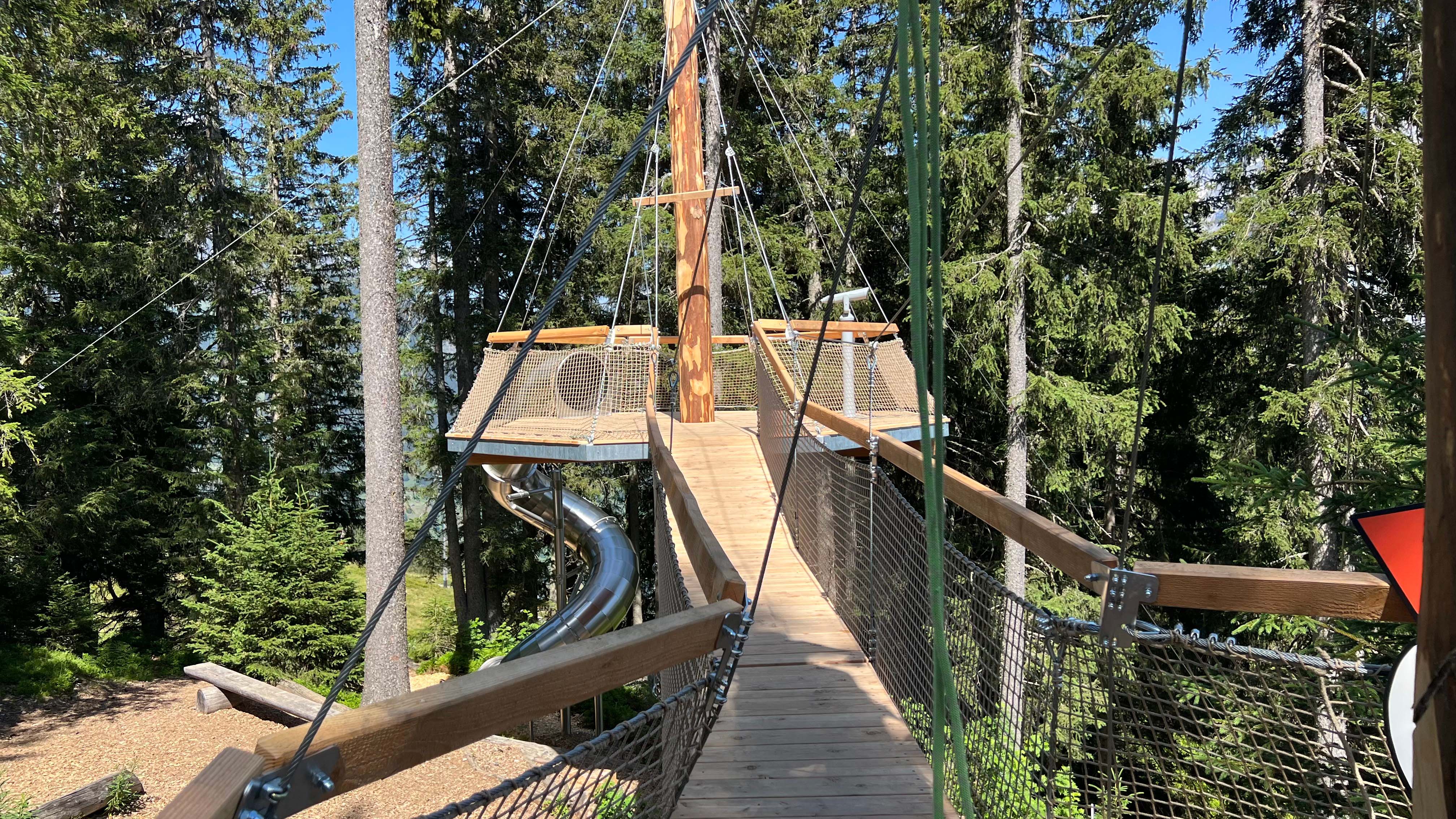 Während Kinder über Hängeelemente klettern und die Rutschbahn hinuntersausen, genießen Erwachsene die frische Bergluft und das beeindruckende Panorama. Ein beliebtes Familienhighlight am Maennlichen.