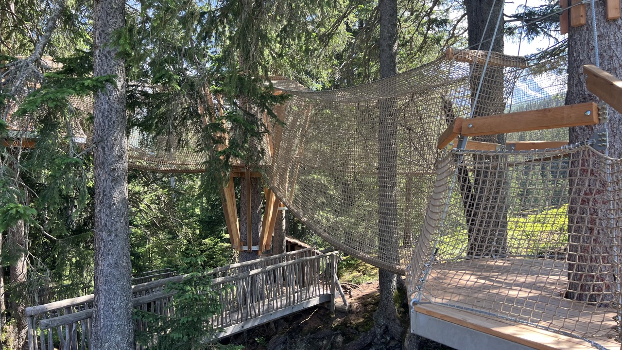 Ein besonderes Naturabenteuer, der Baumwipfelpfad am Männlichen. Hoch zwischen den Bäumen führen zwei kurze Pfade zu vier spannenden Plattformen – mit spektakulären Ausblicken auf Eiger, Mönch und Jungfrau.